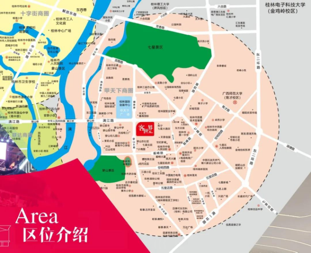 桂林市商業文化廣場:2019年通過法院拍賣,投資了7個多億買下了一個商業地產,現建筑面積11萬平方米的桂林客世界商業文化廣場。雄踞桂林市麗江東畔財富旺地,坐擁甲天下廣場核心商圈,致力打造人文與建筑、商業與藝術融合的多元主題商業模式。